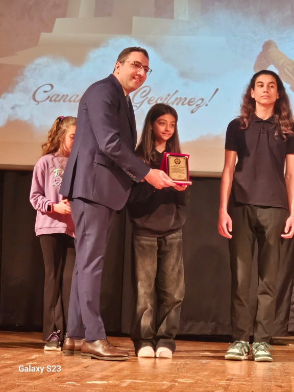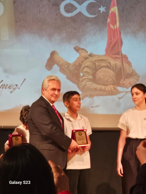 18 MART konulu Şiir Yarışmasında 1. ve 3. olan öğrencilerimiz ödüllerini törenle aldı.