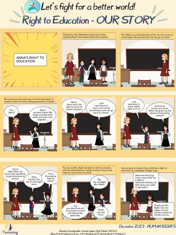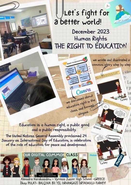 Aralık ayında proje çalışması olarak karışık ülke takımları oluşturarak Eğitim hakkı ile ilgili bir hikaye oluşturduk ve ortak sloganlar yazdık. Tüm takımlar çalışmalarını bitirince çalışmaları içeren bir kitap oluşturduk. Çalışmalarımızın görsellerine ve kitabımızın linkine sitemizden ulaşabilirsiniz.